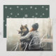 Esta tarjeta de vacaciones con foto presenta la palabra "alegre" en una elegante letra blanca moderna en primer plano y su foto en el fondo. La parte trasera presenta un patrón de copos de nieve verde oscuro y blanco.