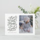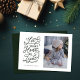 Una hermosa tarjeta de vacaciones con una sola foto en la parte delantera y un saludo con letras a mano con acentos de copos de nieve. Disponible en múltiples colores. Otros respaldos disponibles a petición.