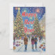 Sumérjase en un vibrante país de las maravillas invernal con esta tarjeta de vacaciones única de estilo mosaico. Con una calle concurrida de la ciudad, árboles de Navidad brillantes y un cielo lleno de fuegos artificiales, es una obra maestra para enviar a sus seres queridos este Año Nuevo