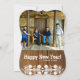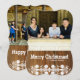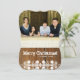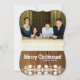 Esta divertida tarjeta de vacaciones de estilo rústico de madera le permite compartir dos fotos (una en la parte delantera y otra en la parte trasera) y dos saludos—Feliz Navidad y Feliz Año Nuevo, o lo que quiera que elija entrar en ese campo de plantilla. Forma de corchete más brillante.
