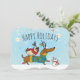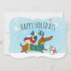 Festiva Tarjeta de vacaciones de Dachshund, Pug y Bird Fla