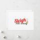 Difunde alegría esta temporada con nuestra tarjeta de vacaciones "Sleigh All Day"! Esta tarjeta alegre presenta tipografía juguetona y un encantador icono de trineo, lo que la convierte en una forma encantadora de compartir tus deseos festivos. El interior está en blanco, lo que te da mucho espacio para escribir mensajes personales a amigos y familiares. Con sus colores vibrantes y diseño moderno, esta tarjeta es perfecta para todos tus saludos navideños, ya sea para Navidad o Año Nuevo.