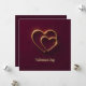 Dos corazones superpuestos con un contorno dorado en un fondo rojo profundo, con un efecto suave de brillo. El texto "Día de San Valentín" está centrado debajo de los corazones.