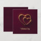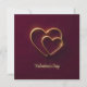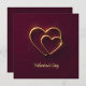 Dos corazones superpuestos con un contorno dorado en un fondo rojo profundo, con un efecto suave de brillo. El texto "Día de San Valentín" está centrado debajo de los corazones.