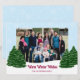 Celebre la belleza del invierno con esta tarjeta de felicitación ilustrada. Los árboles de hoja perenne ubicados en un bosque de nieve, contra un fondo de copos de nieve, evocan la belleza tranquila y silenciosa de la temporada navideña. Es el fondo perfecto para mostrar su foto favorita.