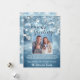 Celebre la temporada con un estilo brillante con esta tarjeta de vacaciones "Saludos de la temporada" azul hielo, que presenta adornos brillantes, nevadas suaves y un espacio para la foto de su familia favorita. Con su encanto invernal y su mensaje sincero, esta tarjeta es perfecta para enviar calidez, alegría y amor durante toda la temporada. Personalice con su foto y el nombre de su familia para crear un recuerdo memorable.
