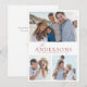 El moderno diseño minimalista de tarjetas navideñas navideñas incluye un elegante guión moderno y un nombre de familia tipográfico de color rojo, con fotos familiares personalizadas, tarjetas de felicitación sencillas y únicas.