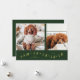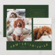 Tarjeta de plantilla de fotos de vacaciones mínima y moderna con 2 fotos de tu mascota en la parte delantera con un divertido texto de tipografía que dice "Paw-La-La-La-La-La". También puede agregar otra imagen y mensaje en la parte posterior. El fondo es verde.
