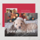 Difundir alegría por las vacaciones con nuestra adorable tarjeta de vacaciones plana "Paws & Love", diseñada especialmente para los dueños de mascotas! La parte delantera muestra un diseño fotográfico completo, perfecto para mostrar a tu querido amigo peluche en toda su gloria festiva. El encantador mensaje "Paws & Love" se muestra elegantemente en la parte inferior. Gire la tarjeta para revelar una foto más pequeña de su mascota o familia junto con un mensaje personalizado. Este cuidado diseño permite compartir tanto la alegría de la temporada como un poco de la personalidad de tu mascota, lo que hace que sea una manera encantadora de conectar con los seres queridos. Celebra las festividades con esta tierna y personal tarjeta que seguramente traerá sonrisas a todos los que estén en tu lista!