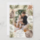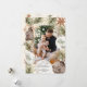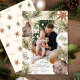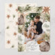 Un marco de pinos, ornamentos y estrellas inspirado en boho rodea tu foto favorita en este encantador diseño. Un patrón de estrellas bailarinas, hojas y primos adorna la parte trasera. Puede añadir fotos y texto en la parte posterior.