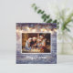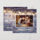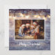 Tarjeta navideña de fotos de madera rústica de tipo String Light. Envíe sus saludos de la temporada con este fondo rústico de madera y luces de cuerda sobre la foto de la familia. Front tiene área para el texto, back tiene áreas para saludar y nombres de familia.