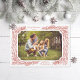 Marco dibujado a mano de conos de pino, escudos y ramas con bayas. El color es editable, así como el saludo, el nombre de la familia y el año. Área opcional para un mensaje en la parte posterior, o puede eliminar y agregar más fotos según desee.