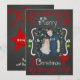 Un fondo de pizarra con hermosos rollos y estrellas de texto rojo y verde y blanco que dice "Feliz Navidad" delante y "Que todos tus días sean alegres y brillantes" detrás. Esta hermosa tarjeta personalizada de fotos navideñas de vacaciones tiene varios adornos estelares, y un pájaro en un diseño de nido y áreas que puedes fácilmente agregar tus nombres, el año actual, y foto!