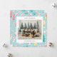 Tarjeta de vacaciones con bonitos ilustraciones temáticos de Navidades en una combinación de colores pastel con una foto familiar acompañada de un saludo de vacaciones y tu nombre y año en una fuente sans serif.