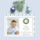Una tarjeta fotográfica de lujo Happy Holidays con espacio para un monograma de una sola letra y una foto familiar. Los elementos de acuarela frontal (corona) y posterior (árbol topiario) fueron pintados originalmente a mano por mí en acuarelas sobre papel 100% de algodón antes de ser escaneados y arreglados/estilizados digitalmente.