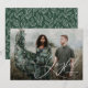 Envía alegres saludos de vacaciones a amigos y familia con estas elegantes tarjetas de fotos de Navidad. El diseño presenta tu foto horizontal favorita de sangrado completo con "Joyful" en un sobreimpresión de escritura de caligrafía moderna y blanca. Personalice la tarjeta agregando su apellido y el año. La tarjeta se invierte para mostrar un patrón follaje blanco contra un fondo verde oscuro personalizable. Las simples tarjetas de Navidad seguramente impresionarán a todos en su lista de Navidades esta temporada de vacaciones.