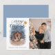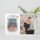 Esta tarjeta tradicional de Navidades incluye una escena de la Natividad a la izquierda y un lugar para que añadas tu propia foto a la derecha. En la parte superior están las palabras "Feliz Navidad en una caligrafía acuarela. Puede personalizar con su(s) nombre(s). La parte posterior de la tarjeta tiene un fondo azul de coordinación.