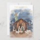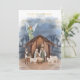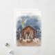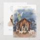 Esta escena tradicional de la Natividad Navidad tiene un overlay dorado con la música de los Navidades "Little Town of Bethlehem" en oro falso. En la parte de atrás hay un pesebre con el versículo de la Biblia de Lucas 2:11 y las palabras "Feliz Navidad en una caligrafía de acuarela. Puede personalizar con su(s) nombre(s).