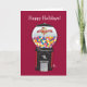Agrega diversión a esta temporada navideña con este diseño retro de máquina de chicles. La cubierta dice "¡Felices Fiestas!" y el interior dice "¡Que rueden los buenos tiempos!"