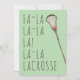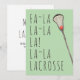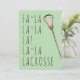 Tarjeta de saludo de Navidades Lacrosse con diseño de palo lax y las divertidas líneas originales "Fa La Lacrosse" y "Merry Lax-mas". Editar texto para personalizar fácilmente.