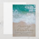 Experimente el espíritu de los Navidades tropicales con nuestra tarjeta única de vacaciones en la playa. Esta sencilla e impresionante tarjeta cuenta con una pintoresca costa de arena y un cautivador mar azul turquesa. El mensaje festivo 'Feliz Navidad' también está escrito artísticamente en la arena. Puede añadir un toque personal con un mensaje personalizado y el nombre de su familia. Una combinación perfecta de festividad y encanto playero, esta tarjeta es la mejor manera de extender la alegría de las vacaciones esta temporada!