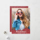 Un patrón de filigree rojo vieira en una textura de lino resalta tu foto favorita en estas tarjetas de fotos navideñas de vacaciones. Su mensaje personal y nombres en la parte de atrás.