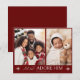 Tarjeta de vacaciones de Navidades de escritura religiosa. Esta hermosa tarjeta de foto navideña presenta un fondo rojo con "déjennos adorarlo" escrito tanto en un clásico tipo de letra serif como en un tipo de letra escrito a mano en bonito, en blanco, con dos estrellas en ambos lados. Esta tarjeta también incluye dos fotos de tu familia y tu nombre. En el reverso está el mismo fondo rojo, al que se puede añadir otra foto o texto adicional seleccionando la opción "editar usando la herramienta de diseño".