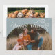 Tarjeta de plantilla de fotos de Navidades íntimos con un texto que dice "vacaciones más felices". Añade fotos de tu familia en esta tarjeta de marco azul de piedra. Hay un ilustracion de arco.