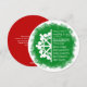 Tarjeta de vacaciones de negocios festiva verde y roja con diseño de copo de nieve y tipografía. ¡El arte moderno del copo de nieve se puede transferir a pegatinas y otros artículos de papelería! El arte verde es versátil para una variedad de colores de empresa verdes o rojos. La forma única de tarjeta redonda es perfecta para divertidas tarjetas de vacaciones para empleados.