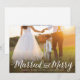 Tarjeta fotográfica de vacaciones con saludo festivo, perfecta para recién casados.