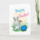 La tarjeta de Pascua bonita tenía un conejo de Pascua y un huevo de Pascua lindos.