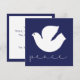 Difunde el mensaje de paz esta temporada navideña. Hermosa paloma blanca moderna de la paz y tipografía. Fondo azul. Agrega tu mensaje personal. Tarjeta perfecta para enviar a familiares y amigos para que sepan que estás pensando en ellos durante la temporada navideña.