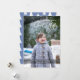 La moderna tarjeta navideña presenta el saludo "deseando un Yule Guay" en un elegante alfabeto blanco en la esquina superior derecha. Reemplace la foto de ejemplo con la suya propia. Personalízalo añadiendo tu apellido y nombres en la barra lateral. También puede añadir el año si lo desea. El texto de su personalizado aparecerá cerca de la parte inferior en blanco en una banda semitransparente oscura que permite pasar la foto. En la parte posterior se observa un patrón de árboles geométricos blancos de distintos tamaños sobre un fondo gris azul mutado. Si desea un fondo de color diferente, puntee en "Haga clic en el personalizar más adelante" y, a continuación, seleccione un color de fondo en la barra lateral. Haga clic en "Listo" y luego en "Añadir al carrito" para comprar su tarjeta de Navidades personalizada. Para ver el diseño de otros elementos, haga clic en el enlace de la colección "Artes Rocklawn" que aparece a continuación. Derechos reservados ©Claire E. Skinner. Todos Los Derechos Reservados. Fotografía © Storytree Studios, Stanford, CA