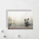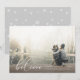 Esta elegante tarjeta de vacaciones presenta la palabra "creer" en una escritura blanca caprichosa con su mensaje personalizado al lado. La parte trasera es un delicado patrón de copos de nieve gris y blanco.