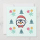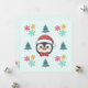 Difunde el ánimo invernal con esta adorable tarjeta de vacaciones cuadrada que presenta un pingüino festivo con un sombrero rojo de Santa y corbata de moño. Rodeado de copos de nieve coloridos y árboles de Navidad decorados en un fondo azul suave, este diseño es perfecto para saludos alegres y sonrisas de temporada.
