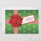 Esta barata y festiva caja de regalo simulado verde, rojo y blanco "Saludos de temporada" Navidades o tarjeta de vacaciones tiene un aspecto de papel envuelto verde con brillantes copos de nieve blancos sobre ella. Hay cintas rayadas en diagonal rojas y blancas envueltas alrededor de la parte delantera con un gran arco de regalo de tipo metálico rojo y una etiqueta de regalo a juego. Esta tarjeta de diversión sería perfecta para que una empresa, empresa o corporación enviara en grandes cantidades a sus clientes y/o empleados o para que cualquiera la enviara a su familia y amigos. Si necesita algún elemento que coincida, como un sobre, un franqueo o un sello para sobres, envíe un correo electrónico a niteowlstudio@gmail.com con su solicitud.