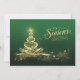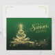 Este elegante y barato Navidad de color verde y falso dorado "Saludos de temporada" o tarjeta de vacaciones tiene un fondo verde profundo con Navidades dorados iluminados o árbol de vacaciones de luz, estrellas, garland de cinta y copos de nieve con una gran estrella de árbol claro. La parte posterior tiene rollos dorados ornamentales que se coordinan con la tipografía vintage en el frente. Esta sería una tarjeta perfecta para que una empresa, empresa o corporación enviara a granel a sus clientes y/o empleados. Si necesita algún elemento que coincida, como un sobre, un franqueo o un sello para sobres, envíe un correo electrónico a niteowlstudio@gmail.com con su solicitud.
