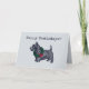 Una bonita tarjeta de saludo con un ilustracion de un Terrier Escocés. Color del fondo del personalizable y textos. Perfecto para el amante del perro o el propietario escocés del Territorio.