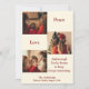 Tarjeta de vacaciones de tres fotos con “Paz, amor y suficiente drama familiar para mantener las cosas interesantes” en la parte delantera.