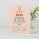Tarjeta de vacaciones personalizada con árbol de palabras inspiradoras: alegría amor paz generosidad y amabilidad en una fuente retro esponjosa con una estrella brillante en la parte superior. Colores suaves boho con tipografía retro para una tarjeta de vacaciones personalizada distintiva. Personalice el mensaje de deseos de vacaciones, el nombre de la familia, los nombres individuales. La parte trasera de esta tarjeta de vacaciones presenta una sola foto de paisaje horizontal con una leyenda personalizada.