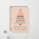 Un árbol de palabras inspirador: alegría amor paz generosidad y amabilidad en una fuente retro hinchada con una estrella brillante en la parte superior. Colores suaves boho con tipografía retro para una tarjeta de vacaciones personalizada distintiva. Personalice el mensaje de deseos de vacaciones, nombre de la familia, nombres individuales.