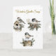 Celebre la serena belleza de un invierno victoriano con esta tarjeta de esplendor navideño. Con tres aves invernales posadas en una rama de piña nevada, un tronco nevado y una casita de pájaros nevada, adornada con acentos festivos verdes y dorados, este diseño captura el encanto, la tranquilidad y la elegancia de la temporada. Perfecto para enviar cálidos y sinceros deseos navideños a familiares y amigos.