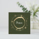 Difunde el mensaje de paz esta temporada navideña. Hermoso diseño moderno de estrella de oro rodea la palabra de Paz. Fondo verde. Agrega tu propio mensaje personal. Tarjeta perfecta para enviar a familiares y amigos para hacerles saber que estás pensando en ellos durante la temporada navideña.