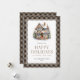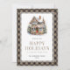 Búfalo caqui colgó la tarjeta Happy Holidays con una casa decorada para Navidades. Personalice fácilmente esta tarjeta acuarela de vacaciones con su nombre familiar y el año.