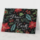 Este saludo navideño realmente impacta. Un fondo audaz es perfecto para los colores brillantes de las flores navideñas. Elija la paleta de colores que mejor se adapte a usted o personalice con sus propios colores. Fácil de personalizar el mensaje interior a su gusto.