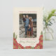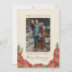 Esta elegante tarjeta de Navidad cuenta con un diseño vintage de flores rojas y vegetación con tu foto. Personaliza fácilmente con tu saludo de "Feliz Navidad" y el nombre de tu familia, y personaliza el mensaje en la parte trasera de la tarjeta. Ideas para incluir los nombres de los miembros de tu familia y el año. Envía comodidad y alegría navideña a tus amigos y familiares. Encuentra artículos coincidentes en la Colección de Navidad Vintage Floral.