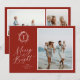 Merry & Bright, Marco de monograma botánico vintage, 3 tarjeta de vacaciones fotográficas. Características, tipografía de escritura elegante sobre fondo de color rojo festivo.