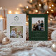 Feliz Navidad, Marco de monograma botánico vintage, tarjeta de foto de vacaciones. Características, tipografía verde festiva con 2 espacios de plantillas de fotos.