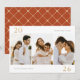 Relieve metalizado falso de oro "2024". Tres fotos, tarjeta de año nuevo. El dorso de la carta presenta un elegante patrón de entramado dorado en el naranja de terracota.