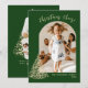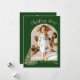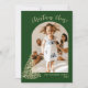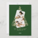 Un hermoso árbol de Navidad dorado adorna esta única tarjeta de vacaciones. Personalizar fácilmente tu información personal junto con tus fotos en la parte delantera y trasera, y disfruta de esta tarjeta moderna en verde sabio esta temporada de vacaciones.